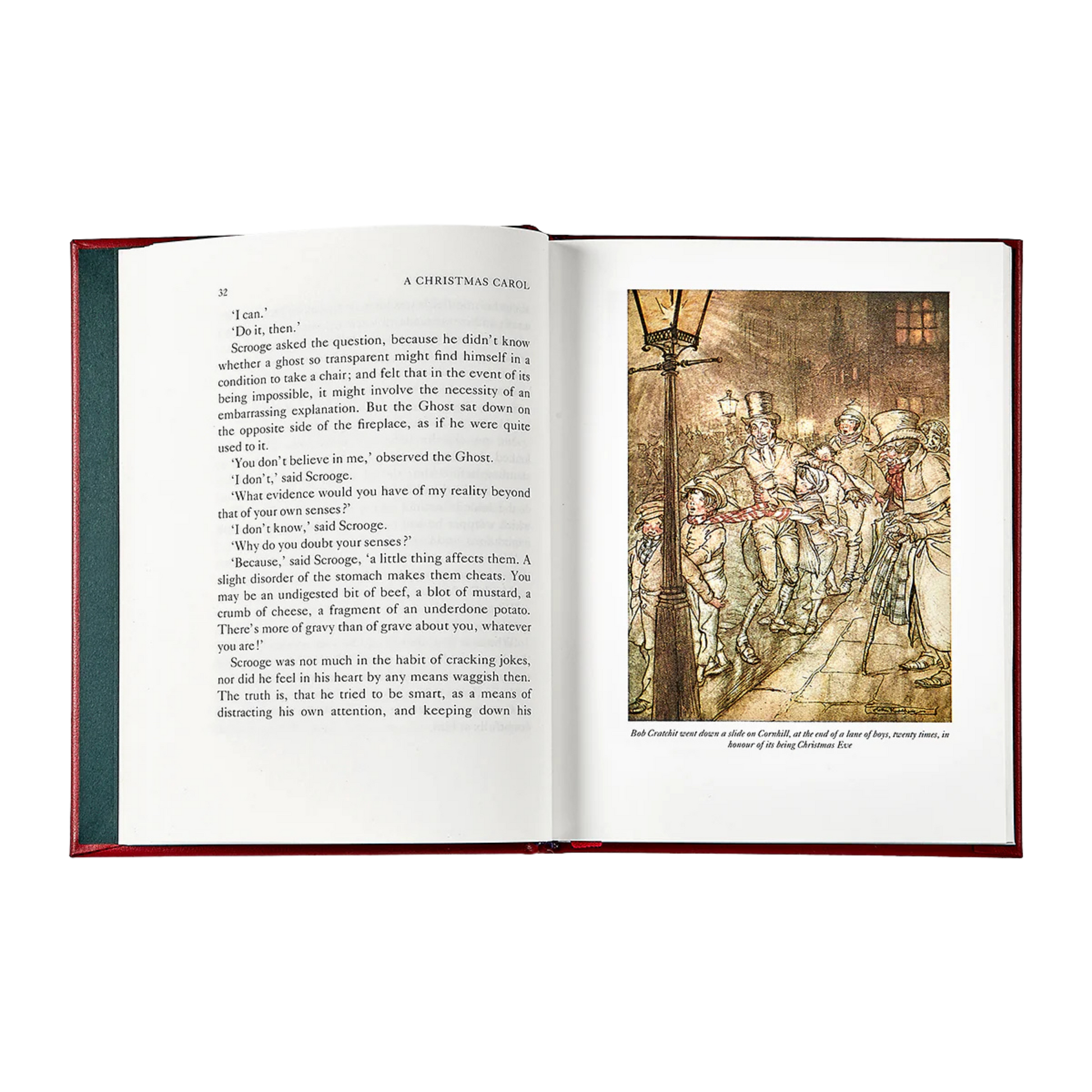 A gorgeous leather hardcover edition of the timeless holiday classic, featuring stunning full-color illustrations by Arthur Rackham, with a gilt-stamped cloth cover, acid-free paper, sewn bindings, and a silk ribbon marker. No holiday season is complete without Charles Dickens's dramatic and heartwarming story of the transformation of miserly Ebenezer Scrooge through the efforts of the Ghosts of Christmas Past, Present, and Future. Set on a cold Christmas Eve in Victorian London, and featuring Scrooge's long-suffering and mild-mannered clerk, Bob Cratchit; Bob’s kindhearted son, Tiny Tim; and a host of colorful characters, A Christmas Carol was an instant hit and has been beloved ever since by generations of readers of all ages.