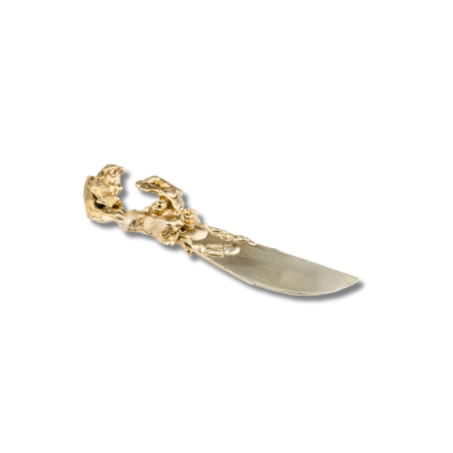 Hand carved & cast in solid brass mimicking the treasures found onboard a sunken ship within the depths of the sea. The perfect dip spreader or cheese knife.