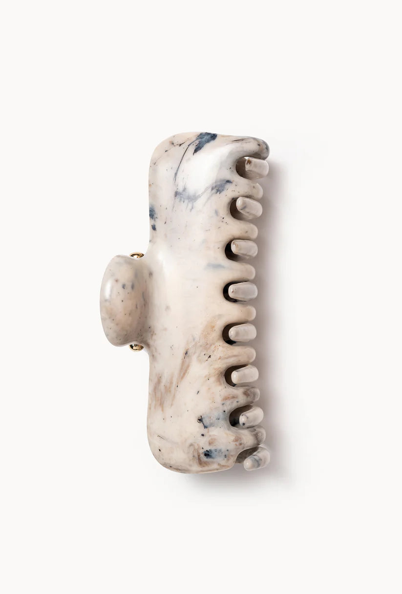 The UNDO Claw Clip is uniquely designed for superior holding power. Its contoured surfaces close flat, providing an unparalleled grasp to create a wide variety of styling options with ease. Crafted through a precise pouring and polishing process, this clip boasts striking curves and contours, while its high-tension spring ensures all-day holding power, offering both style and reliability in one exquisite accessory.