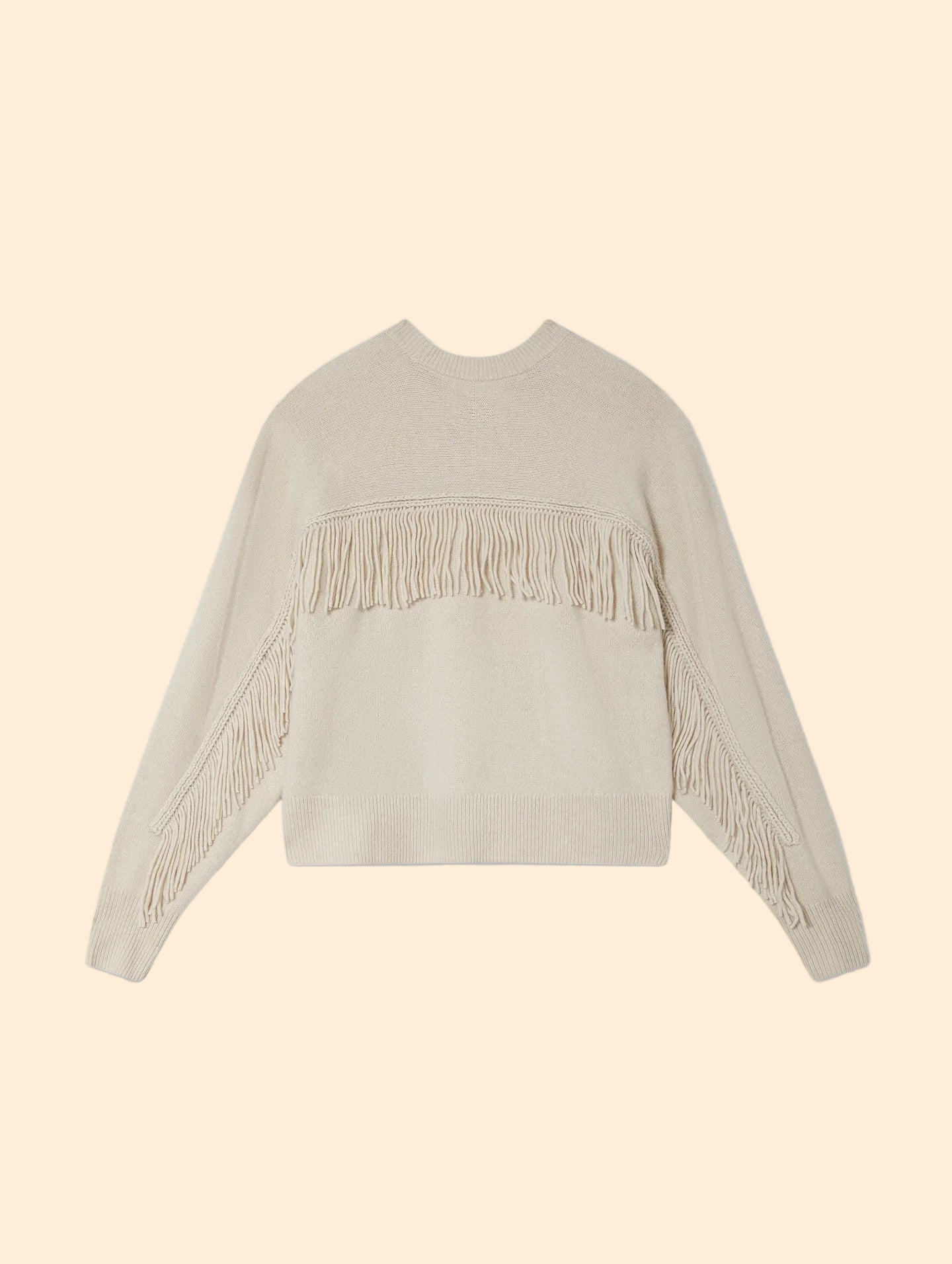 WHITE & WARREN Cashmere Blend Luxe Fringe Crew Ivory